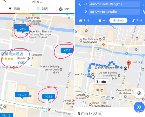 第四家阿芙罗宾馆,距离医院约600米左右,步行的话在7分钟左右就可以达到医院了,酒店所处的位置比较好,旁边是big C,过马路是central world,前面一点就是四面佛,虽然酒店房间略小,但这个价格这个地段还是挺不错的。