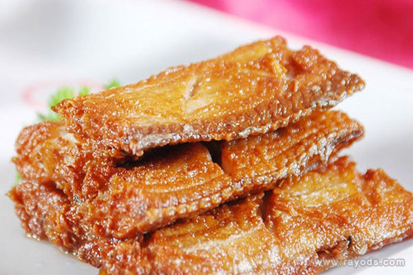 做法:带鱼洗干净,加入料酒。姜片,腌制五分钟,去除腥味。然后锅内加入玉米油,然后放入带鱼炸,直至金黄色,捞出来。再将锅烧热,加入食盐,放入葱段、姜片,酱油,食盐,爆炒几下,然后加入清水烧开,转小火,后取汁淋带鱼表面,即可食用。带鱼有壮阳益精、补益五脏的功效。