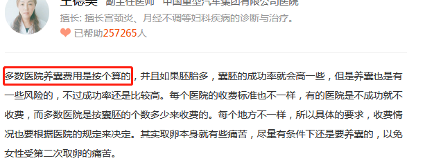 可以看出不同地区、医院的养囊费用是不一样的,每家费用真心相差很大,大家具体还是看医生怎么说,网络上介绍的费用标准仅仅参考,只要能养囊成功什么都值得。