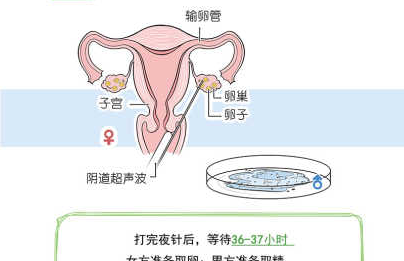 大约在经期第11天左右卵泡发育成熟,于当晚来院注射HCG及其他药物(打夜针),注射后36小时(夜针后隔日上午)来院接受取卵手术。