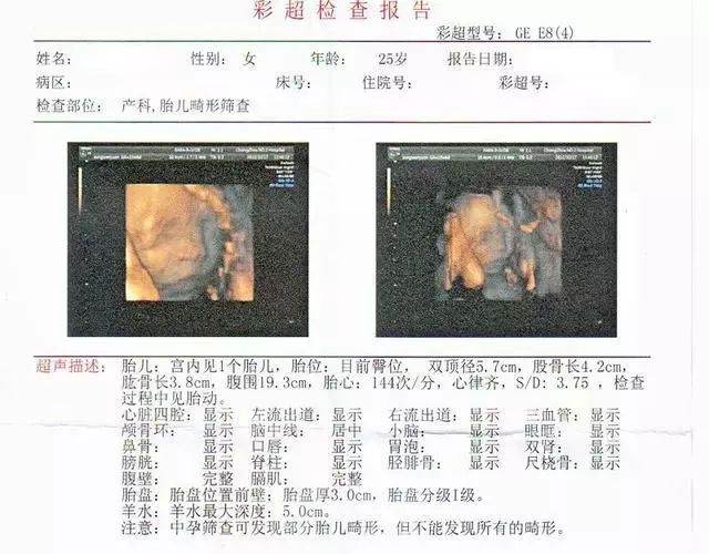 注:三维彩超检查后的最佳时间各位孕妈们一定要清楚,一般情况是22周~24周做第一次彩超,一般是用来看宝宝有没有畸形的,尤其是上唇的唇裂这个时间都能查出来了。第二次彩超大部分是28~30周做,也是用来筛畸的,这时候宝宝长大的比较多了,可以更清晰的看到第一次没有看到的部分。