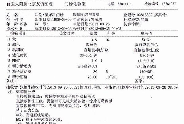 精子检查报告单