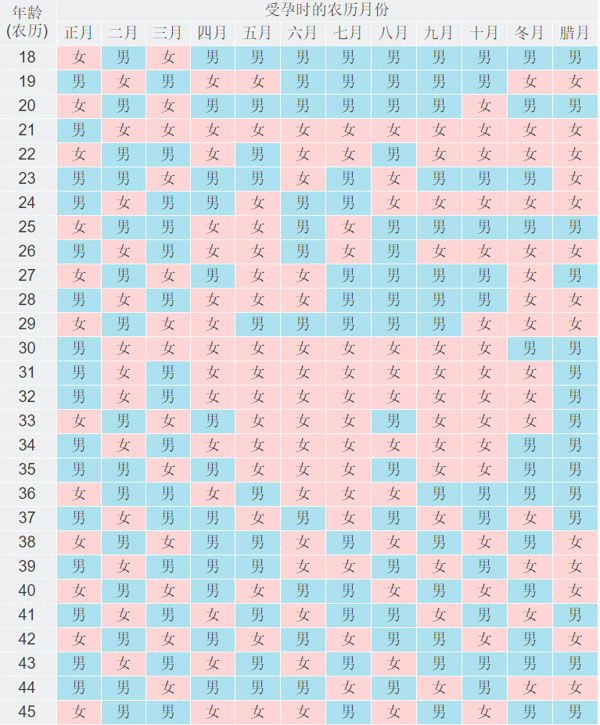 生男生女清宫图是根据周易、按照阴阳、五行、八卦的公式推算而成一张预测生男生女的表格。这个生男生女清宫表中1~12是代表怀孕月份,18~45代表女性的年龄,生男生女清宫表是以虚龄计算的。