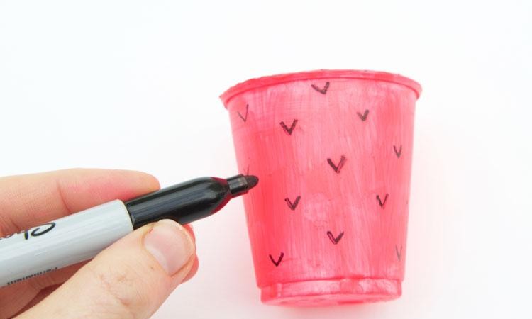等颜料干燥后,用马克笔画上自己喜欢的图案。这里也可以用贴纸、彩胶带来进行装饰。