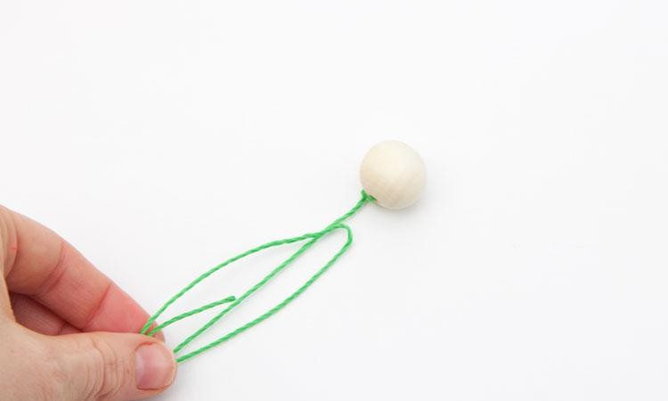 接下来,将绳子绑在木珠上,留出大概15cm距离来。
