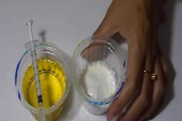 1、准备好两个一次性纸杯,一个放入适量的牙膏(普通牙膏就可以的),另一个接一点尿液(大概有杯子的五分之一即可,最好是晨尿);