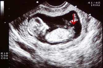 小肿块以一个陡峭的角度向上指,显示这个胎儿是个男孩。