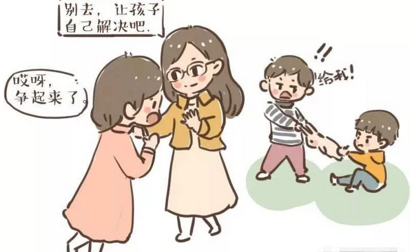 孩子之间发生冲突时,父母要分清楚孩子发生冲突的原因。如果原因是为了区区只是为了争夺一件小玩具,那么父母可以选择性的介入。