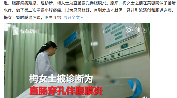 美容院做肠清水疗却洗出肠穿孔