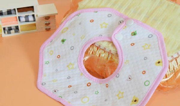 钩针、毛线、毛绒围嘴都是十分可爱的,也很实用,围嘴的尺寸可根据宝宝来确定,一般单层所需布料约为35cm(和布边水平方向的长度)×45cm(宽)。家长可以多给宝宝准备几条围嘴,这样可以方便换洗,切忌宝宝戴着“自然风干”重复使用,这样容易滋生细菌。