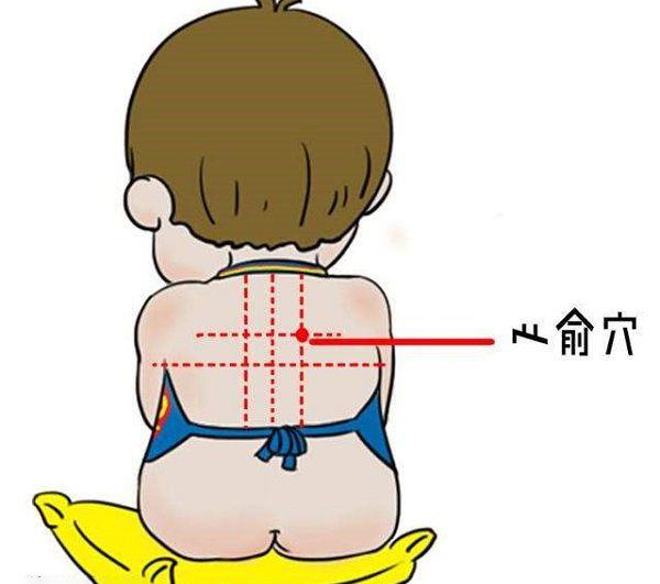 穴位:位于第五胸棘突下,左右旁开1.5寸,找穴位时可以让宝宝的肩胛骨中央的脊柱骨起,然后左右旁开两横指就是心腧穴位所在。
