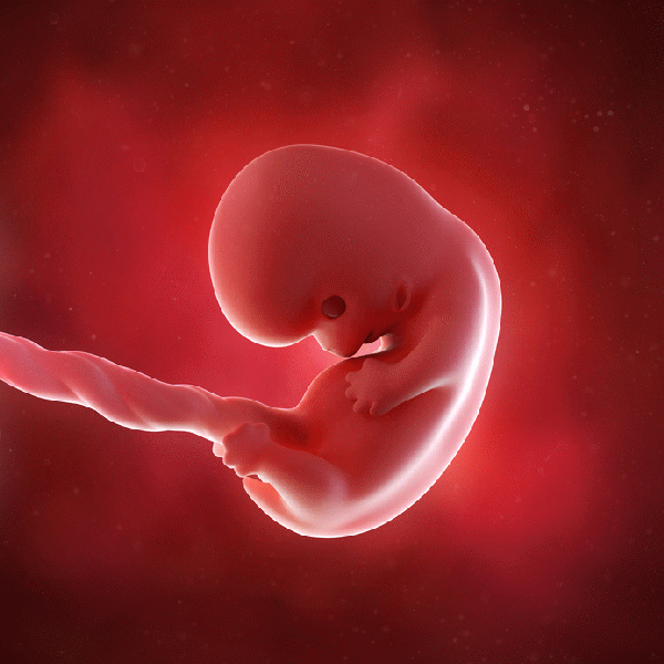 在这个时候,除了孕吐反应之外,几乎看不出准妈妈已经怀孕。但是,胎儿在母体中开始快速的发育,可以初步看出人形,头、身体躯干和四肢已经形成,而且头部较大,甚至可以分辨出眼、鼻和耳朵,心脏出现跳动。