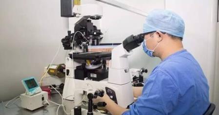3、获取卵母细胞,在吸出卵泡液后会立即通过试管送往实验室,通过显微镜从卵泡液中将卵子细胞分离出来,整个过程需要在暗环境中进行;