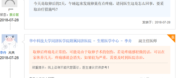 对于取卵后卵巢疼痛这种情况,其实做过试管婴儿的姐妹们经常遇到,并且她们的解决方法也存在一定区别,下面我们来看看经历过取卵后卵巢疼痛的姐妹们是怎么应对的。