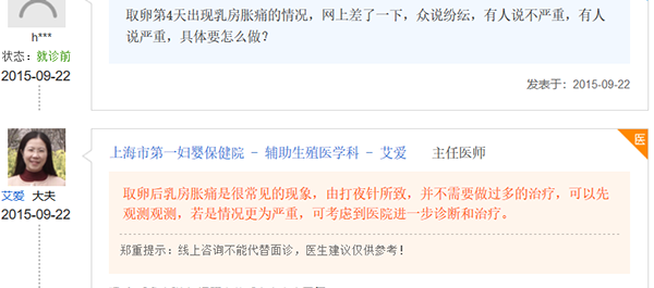 对于取卵后乳房胀痛这种情况,其实做过试管婴儿的姐妹们经常遇到,并且她们的解决方法也存在一定区别,下面我们来看看经历过取卵后乳房胀痛的姐妹们是怎么应对的。