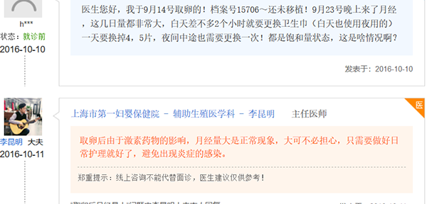 对于取卵后月经量大这种情况,其实做过试管婴儿的姐妹们经常遇到,并且她们的解决方法也存在一定区别,下面我们来看看经历过取卵后月经量大的姐妹们是怎么应对的。
