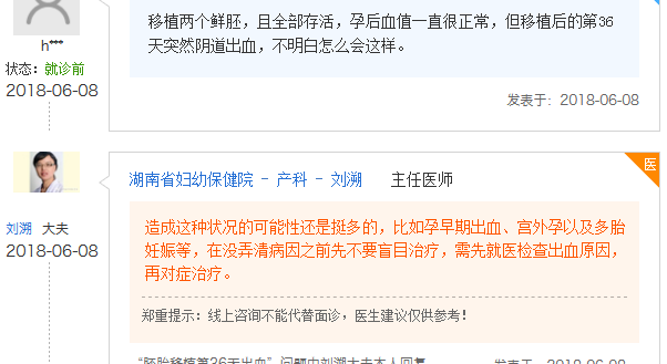 很多胚胎移植后的姐妹们都遇到过阴道出血的状况,即便是移植第36天出血的状况也并非个例,下面我们来经历过的网友们都是怎么说的。