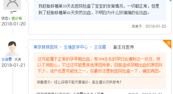 其实胚胎移植第41天出血的姐妹们并不少,很多女性胚胎移植后都有遇到过这一状况,下面小编就收集整理了一些网友们的经历,供大家参考。