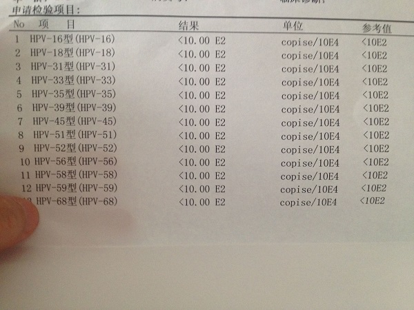 各项检查均在正常范围内即没有感染HPV
