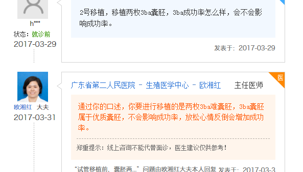 其实关注3ba囊胚质量怎么样,是很多试管姐妹都想知道的,而其中很多女性已经给出了答案:最开始医生告诉我3ba是属于优质囊胚,叫我不要担心,免得导致失败,引起试管婴儿费用增加,在移植后的14天进行HCG检查得知了好孕消息。