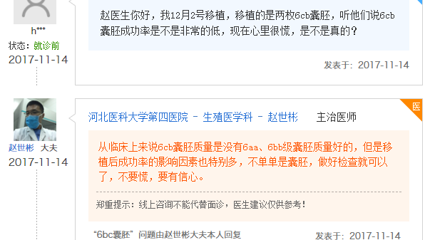 作为一个过来人告诉你,6cb囊胚是可以进行移植的,不要因为6cb囊胚质量差就不进行移植了,很多时候都没有尝试过,你怎么知道结果会怎么样,做好万全的准备,因为成功总是留给有准备的人。