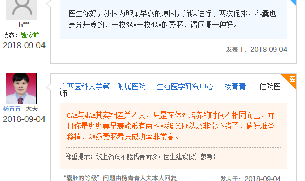 如果单单是临床上来说的话,6aa囊胚好还是4aa好其实是没有具体的评判,因为囊胚评级的好坏主要是看内细胞团以及滋养层细胞进行分级的,而6aa与4aa囊胚不管是细胞团还是滋养层都相同,都属于顶级优质囊胚。