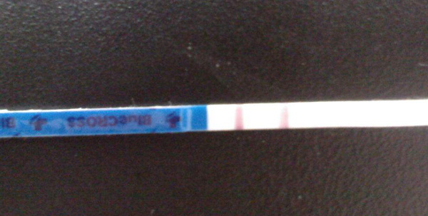 移植4aa囊胚已经有5天的时候第一次验孕,在移植后就一直打黄体酮,感觉上挺不错的,但是没有出现着床的症状,这次验孕颜色变化不大,但是在14天的HCG检查的时候才好孕。案例1