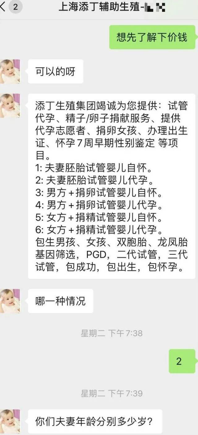 我们从不害怕被举报,也不怕曝光。在深入交谈中, 上海添丁生殖集团负责接待的刘先生表示,代怀生子中介机构冲锋在前,只要背后提供技术支持的实验室和医生没被取缔,代怀生子生意就可以变个法子做下去。