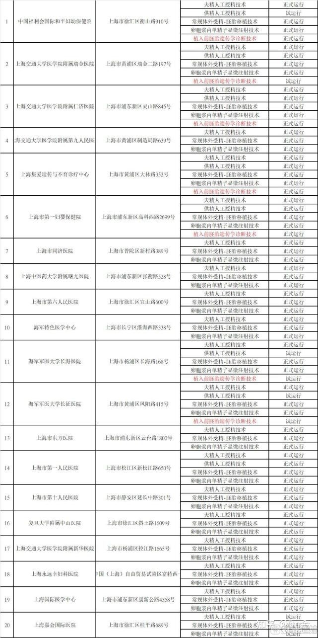 截止到2021年12月31日,上海市经批准开展人类辅助生殖技术(ART)的医疗机构共有20家,其中7家可开展供卵三代试管技术。具体可参考下图: