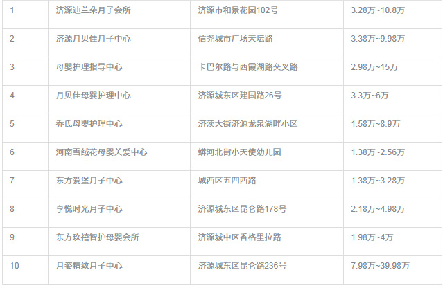 济源月子中心价格表
