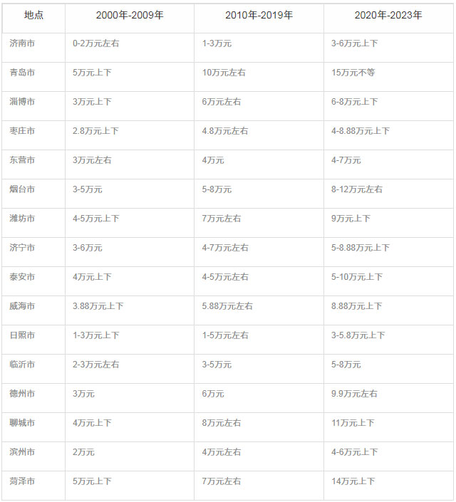 2023山东彩礼排行榜一览表
