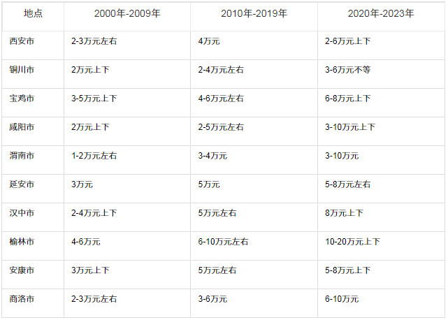 目前娶一个陕西女孩的彩礼通常是6-10万元左右,在全国排名中并不是很高,算是一个比较合理的价格,但一般不同城市的彩礼是不同的,下面就列举了陕西各市近几年彩礼的变化,仅供参考。