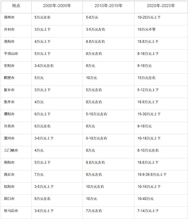2023河南彩礼价格表