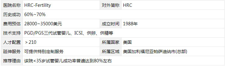 美国HRC试管婴儿费用