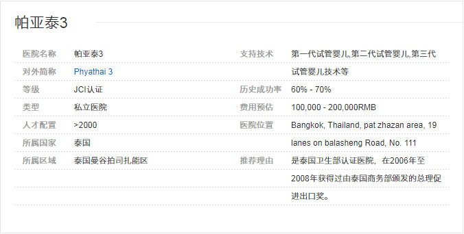 泰国做试管婴儿医院帕亚泰2和帕亚泰3的区别