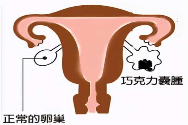 卵巢内没有受精的卵泡成为废品垃圾也要排泄出去,必须靠体内液压把这些垃圾挤出来,由于你机能减退,加上输卵管有堵塞现象,垃圾排不出来,排不出去的卵子堆积在卵巢内,就形成了巧克力囊肿。