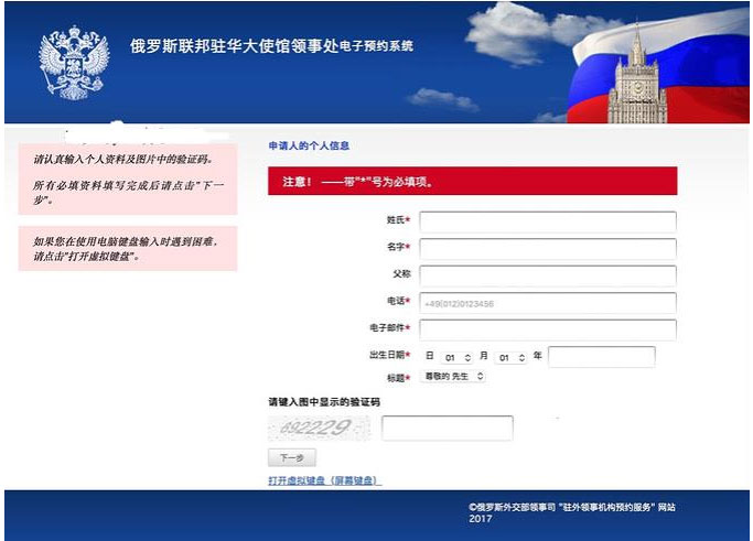 俄罗斯领事馆在中国大陆有四个,分别是北京,上海,广州和沈阳。每个领事馆操作方法都很相似,只是网页格式不同而已,最后都将引导客户进行两个操作:1.填写签证申请表。2.预约前往领事馆。