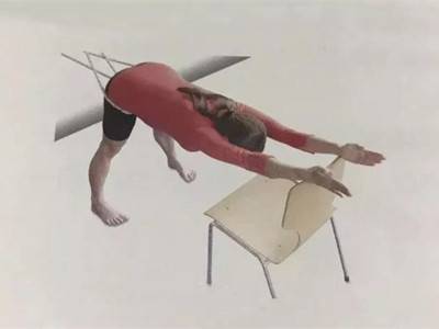 这个体式我们需要用到一张椅子。我们要先弯腰,将上身前倾,将双手放在椅子上,记得手掌伸直,两只手的掌心相对。双脚分开,要比腰距略宽。面部朝下。坚持一分钟之后即可。