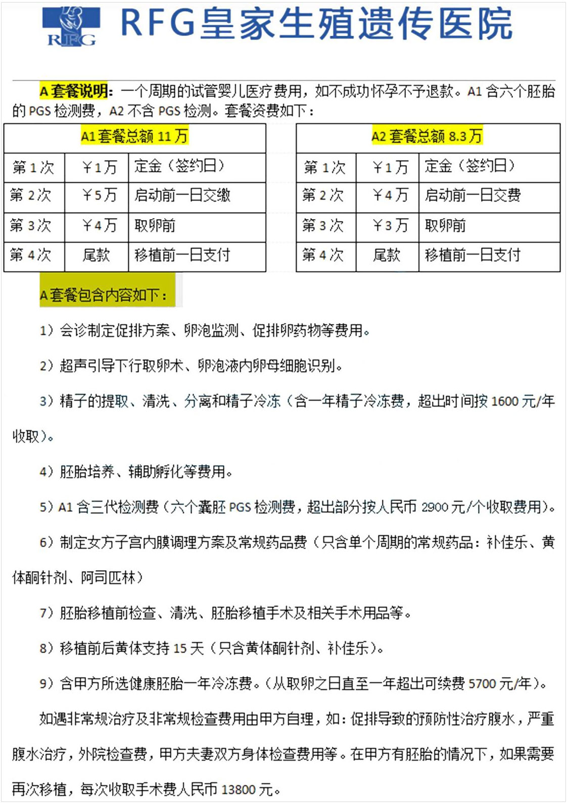 柬埔寨RFG皇家生殖遗传医院价格表