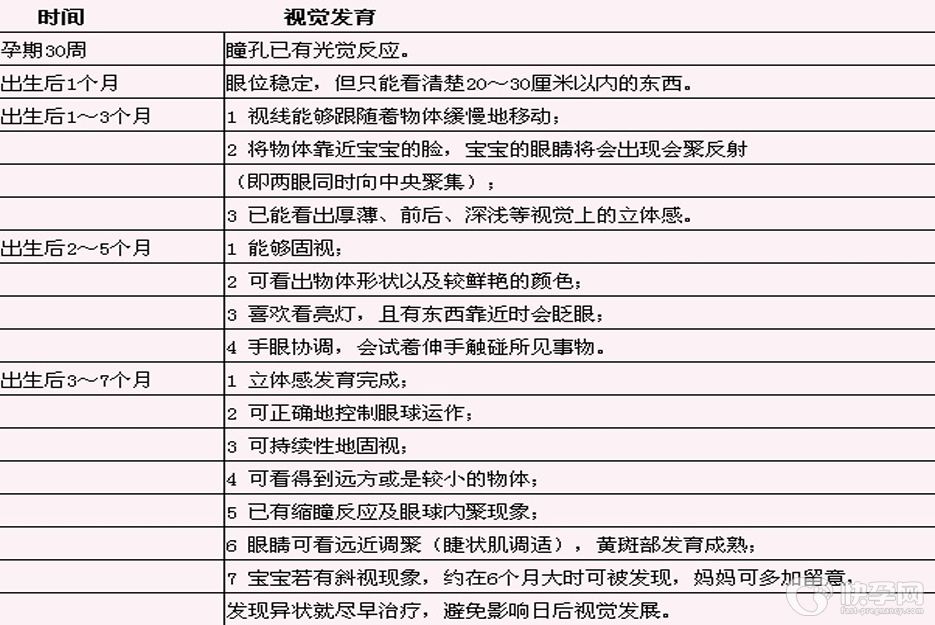 婴儿视力发育过程图
