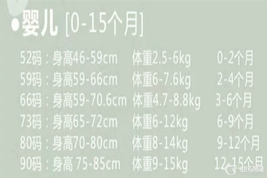 婴儿在第一年内生长速度非常快,选择适当大一点的衣服,可以穿的更久。很多准妈妈会因为将会人母而大买特买,等宝宝出生后,却发现有的衣服甚至没有被穿过。为了避免这种浪费,准妈妈有需要提前了解婴幼儿衣服对应的尺码: