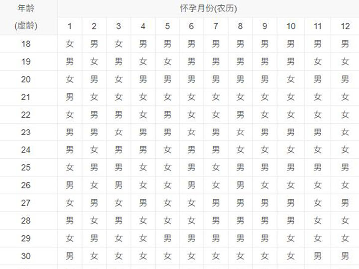 其实古代生男生女清宫图是有两部分组成,横坐标为怀孕月份,从1月到12月,纵坐标为年龄或者女性出生年份,而通常情况下都是以虚龄来计算的,意思就是从妈妈肚子里那年开始算,下面我们就来看看这个图到底是怎么样的,如下: