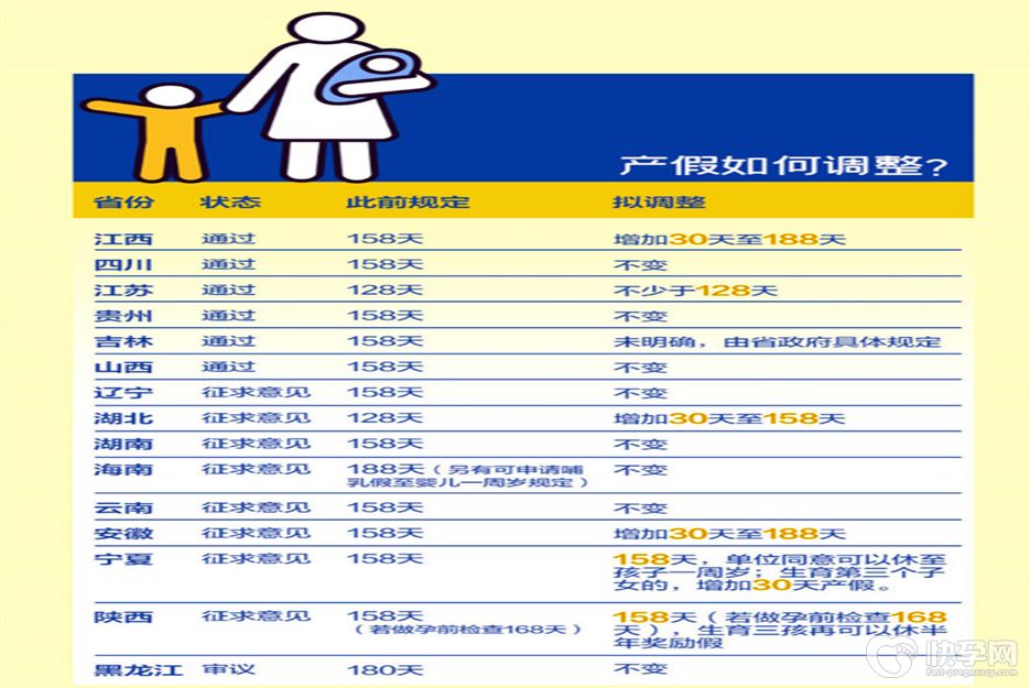 省级人口计生条例持续出台-产假最长或可延至350天,男性陪产假最长延至35天