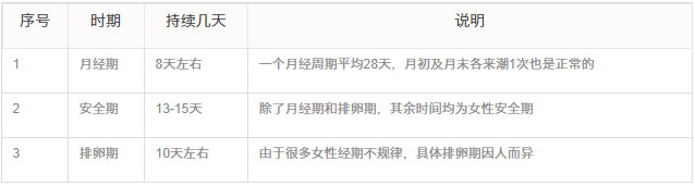 月经安全期排卵期对照表