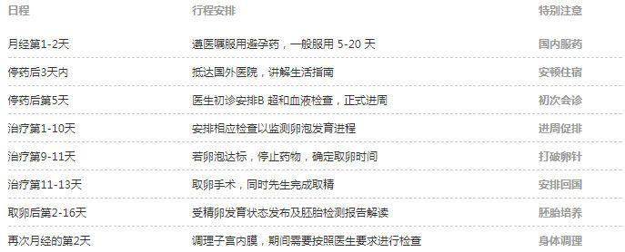 泰国试管婴儿行程安排图如下