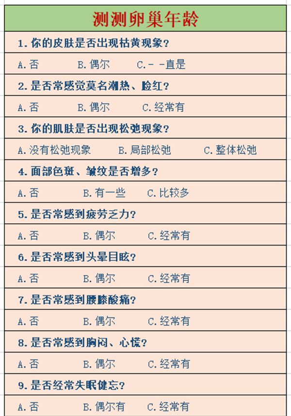 下面大家就按图来测测自己的卵巢年龄吧!