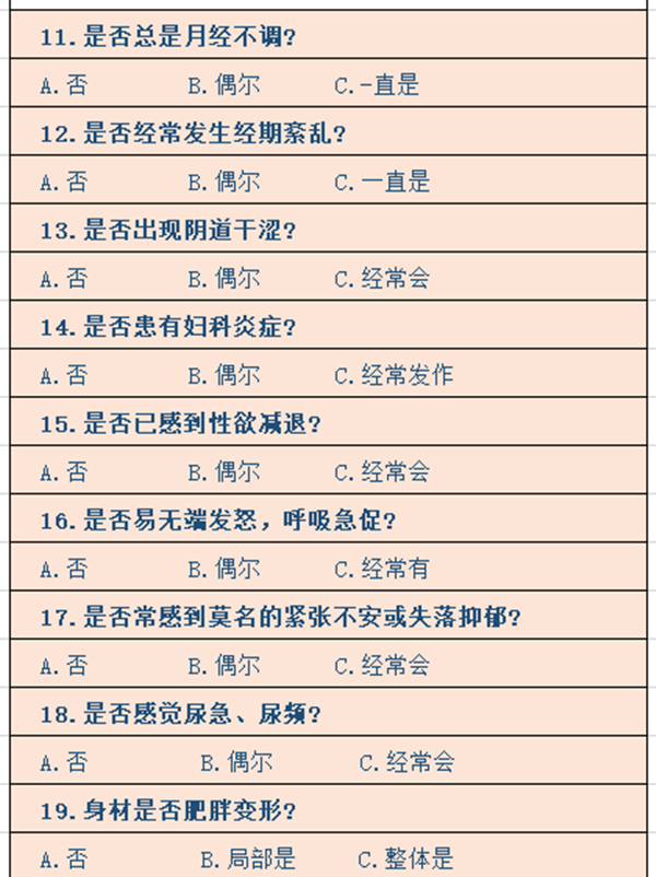 卵巢早衰有什么症状?卵巢早衰一般发生于45~55岁女性,但如今卵巢早衰患者越来越年轻化,致使雌激素提早衰减,出现了一些本该更年期才有的代谢紊乱和衰老现象。本文将详细介绍卵巢早衰的症状,并教大家怎样去自测你的卵巢年龄。如果出现以下这些症状,就要开始警惕你的卵巢功能是否早衰了: