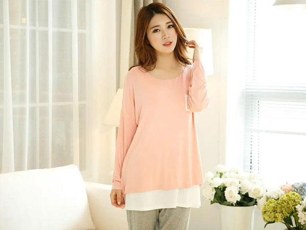 相较于普通睡衣来说,月子服的衣摆会更加宽松,这样可以避免妈妈的腰腹部着凉。