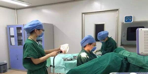 4、护士会指导您在手术床上躺下,医生为您消毒、冲洗、铺单,在消毒之后,您的手就不可以放下来碰到手术区了。