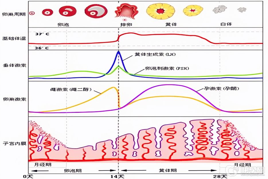 雌激素在适龄女性体内雌激素主要由卵巢产生。在女性正常月经周期中,雌激素的变化曲线水平如下: